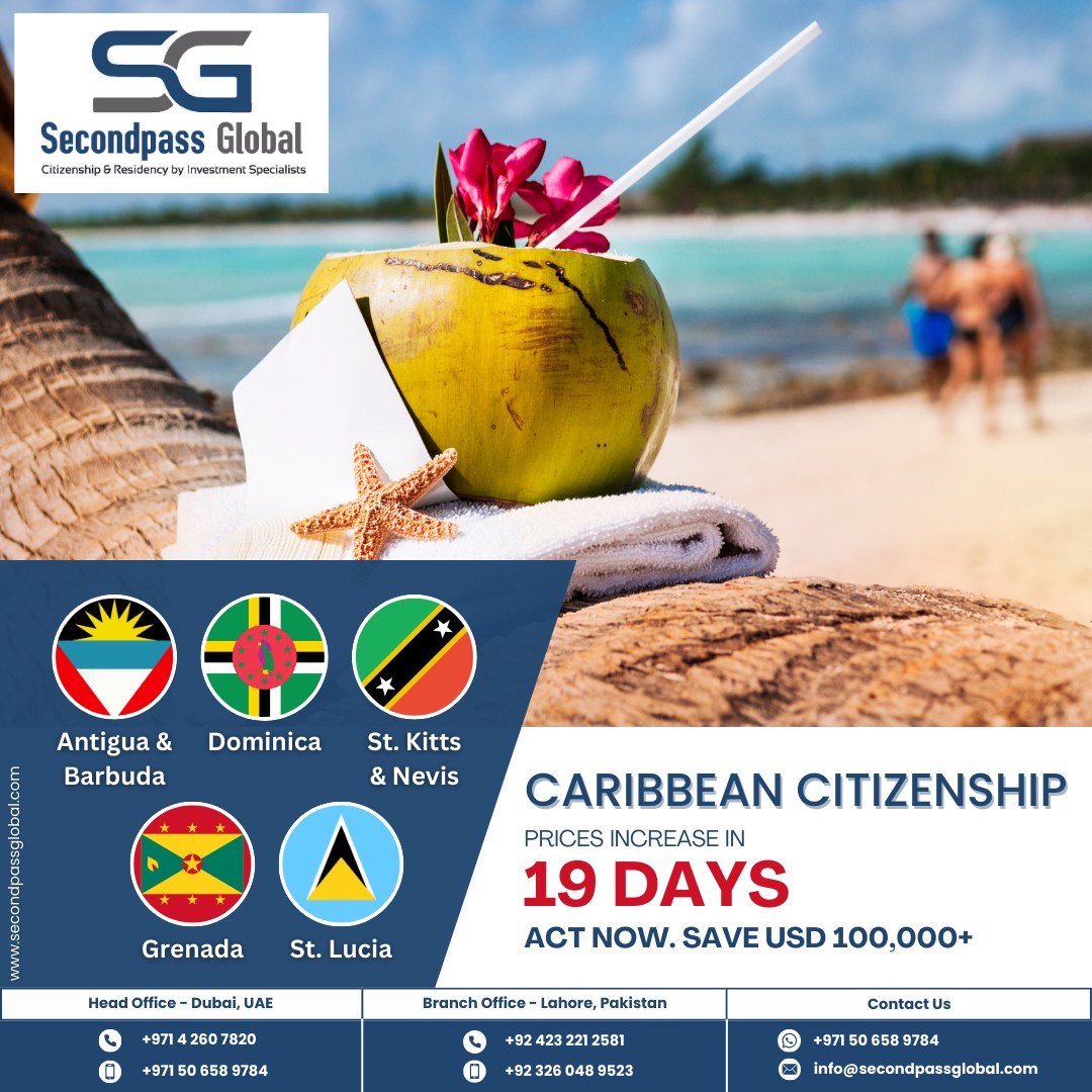 Embrace a world of opportunity with Caribbean Citizenship by Investment! Prices increasing in 19 days. Act now and save over USD 100,000. Secure a brighter future for you and your loved ones.