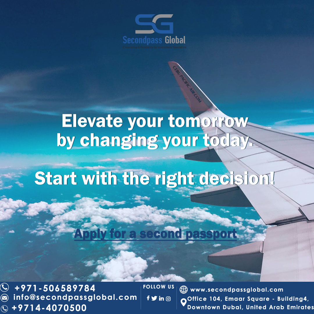 ELEVATE YOUR TOMORROW BY CHANGING YOUR TODAY. START WITH THE RIGHT DECISION! APPLY FOR A SECOND PASSPORT