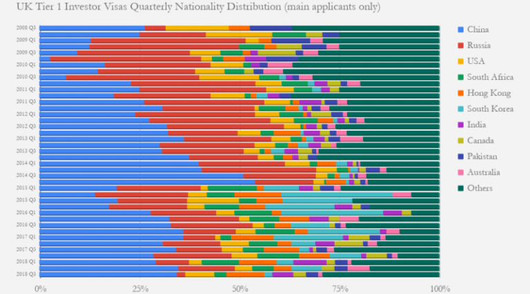 The United Kingdom’s Tier 1 Visa program – which has both an investor and an Entrepreneur category – published its first statistical overview in the third quarter of 2008. Today, exactly ten years later, the Office for National Statistics released figures Q3 2018.