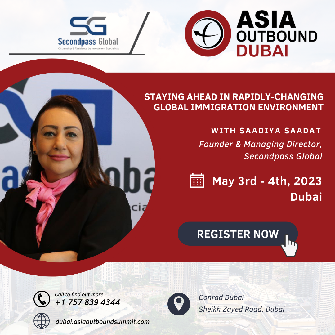We are pleased to announce that our Managing Director, Mrs. Saadiya Saadat, has been selected by Asia Outbound to speak at their prestigious in-person summit in Dubai on May 3rd-4th, 2023. Mrs. Saadat will be sharing her valuable insights on “Staying Ahead in a Rapidly-Changing Global Immigration Environment.”